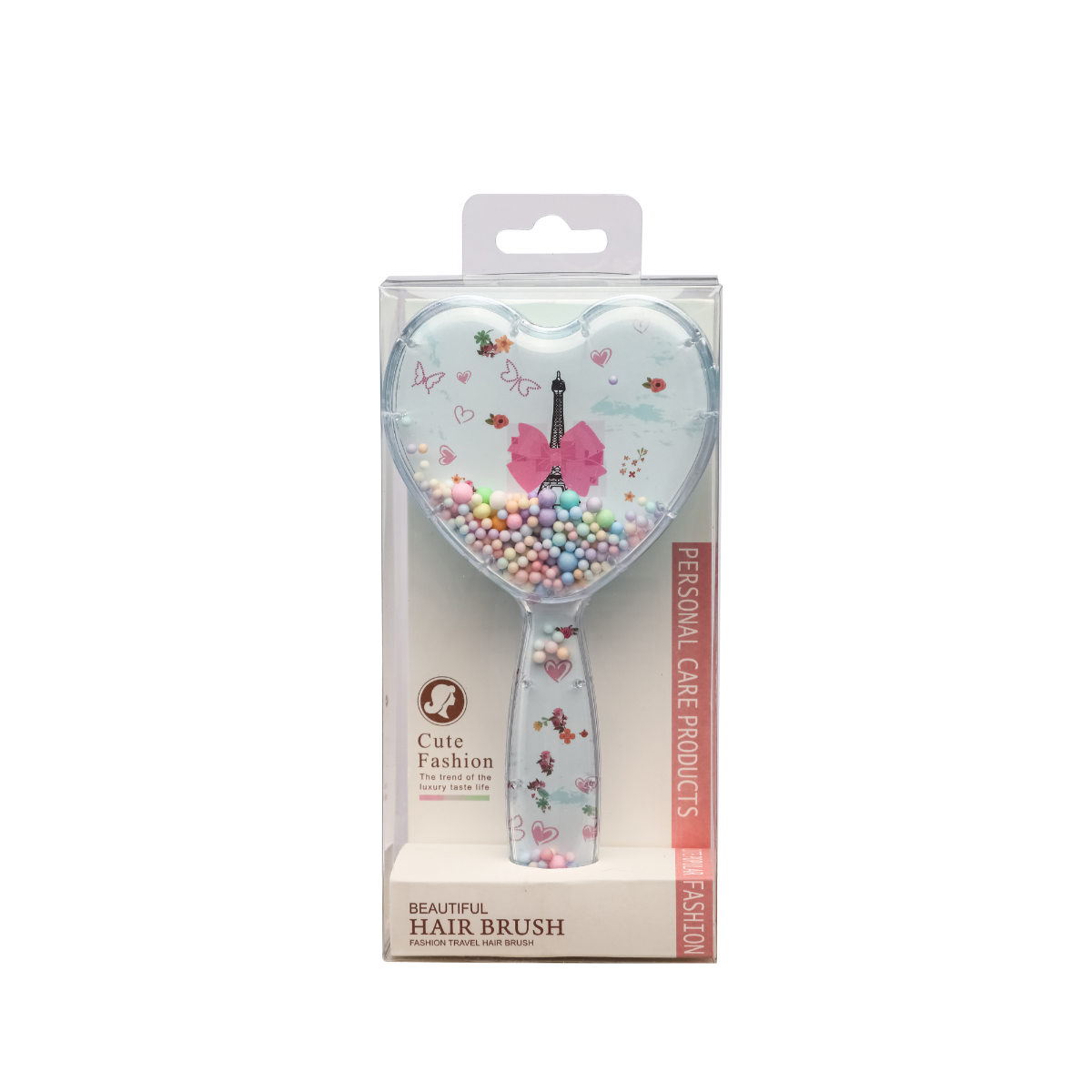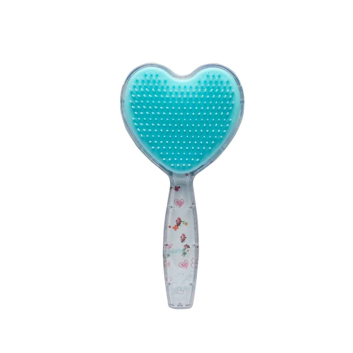Cepillo con forma de corazón y cerdas de plástico ideal para desenredar y dejar el cabello suave.