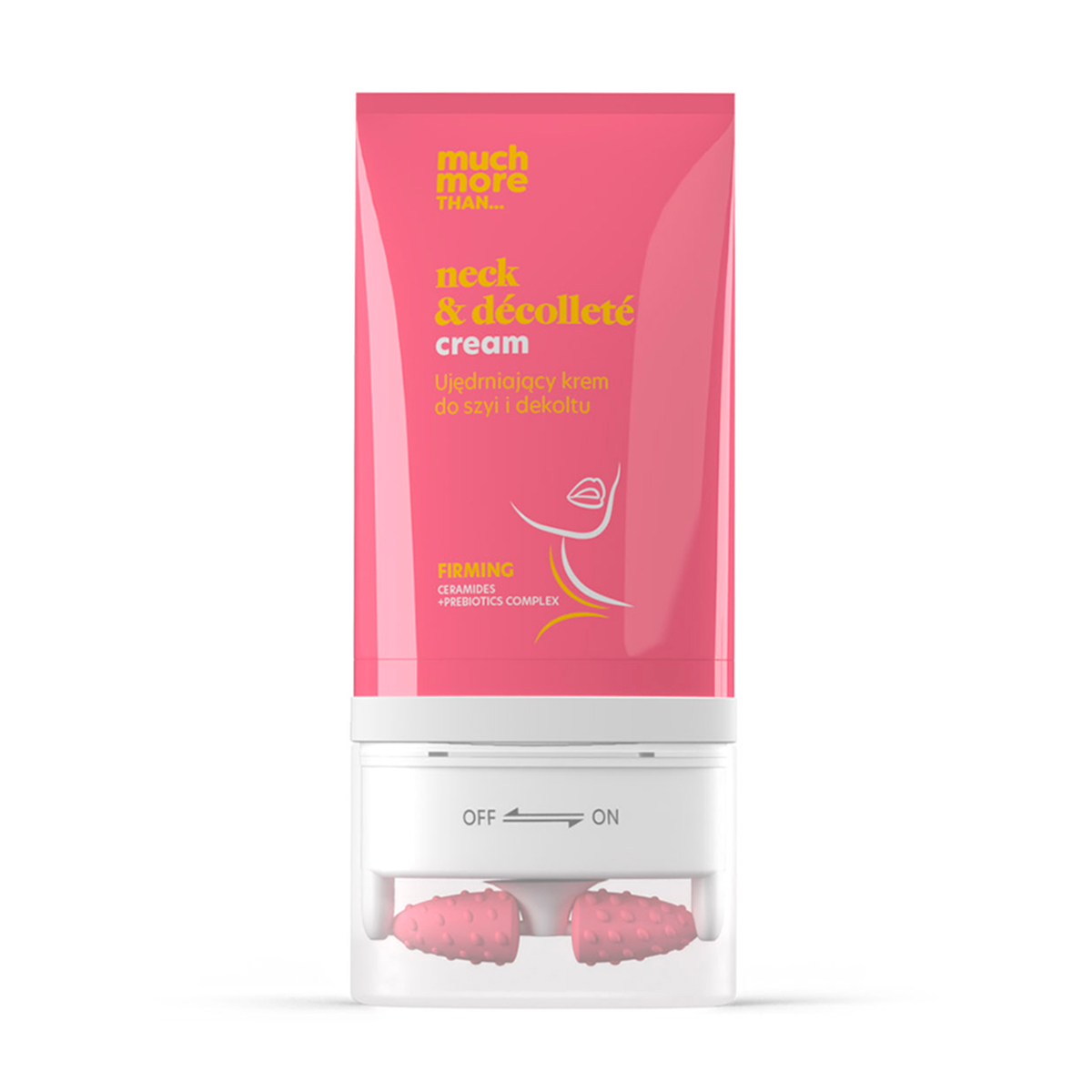 El rodillo incorporado fue diseñado para masajear la delicada área del cuello y el escote. Tiene un efecto positivo en mejorar la densidad de la piel, estimula la síntesis de colágeno y elastina, y favorece la absorción de los ingredientes activos contenidos en el producto. ¡Es más que una crema reafirmante! Contiene Ceramidas: lípidos que refuerzan la barrera cutánea y retienen la hidratación. Complejo de prebióticos: ayudan a mantener el equilibrio de la microbiota cutánea, fortaleciendo la barrera y la resistencia de la piel.